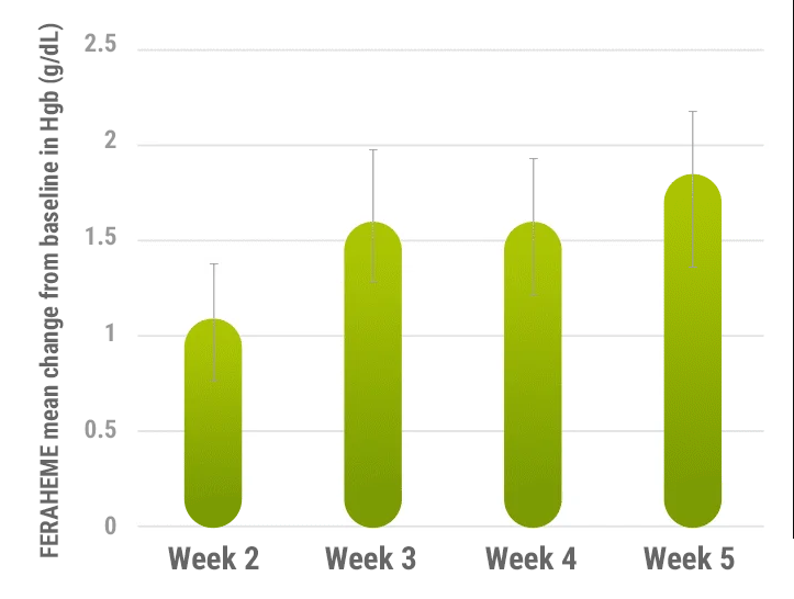 FERAHEME SIGNIFICANTLY INCREASED MEAN CHANGE IN Hgb FROM BASELINE VS ORAL IRON2